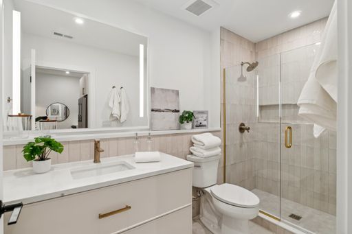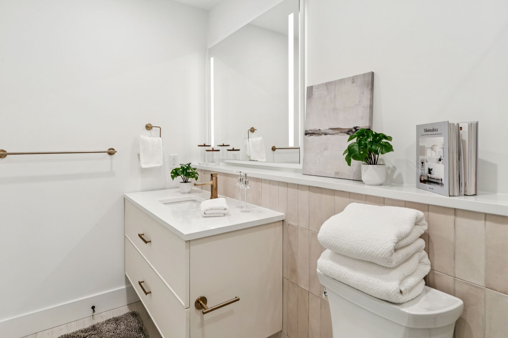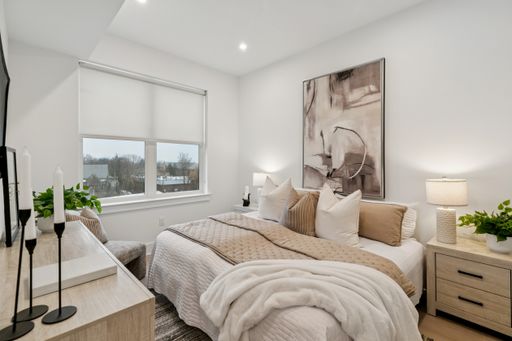 Inside each residence, contemporary interiors blend modern sophistication with the timeless character of the surrounding neighborhood. Apartment homes are outfitted with Samsung stainless steel appliances, classic shaker-style cabinetry, stunning waterfall quartz countertops and backsplashes, Latch smart access, smart thermostats, custom closet systems, built-in mudrooms, and spacious, open layouts designed for both style and functionality.