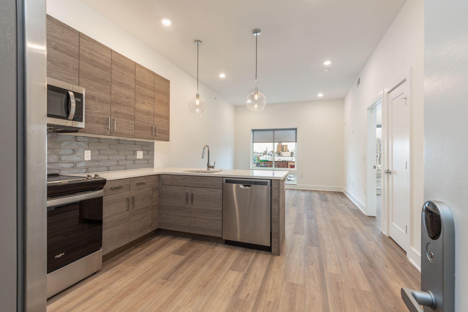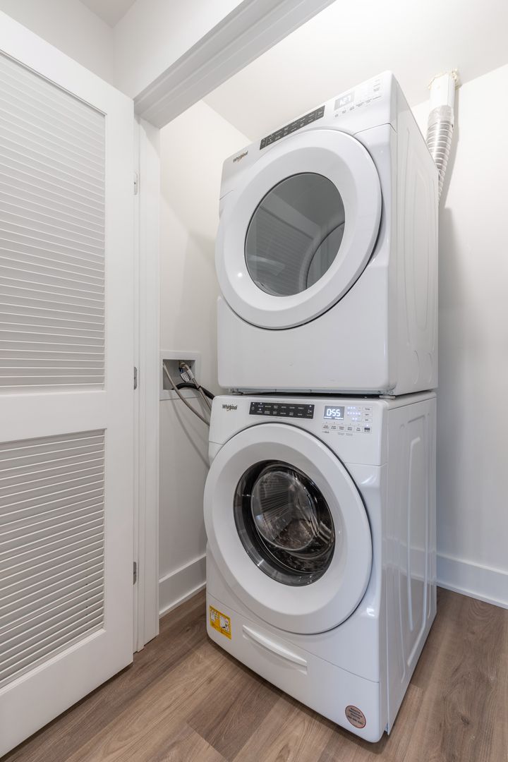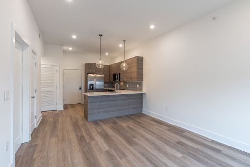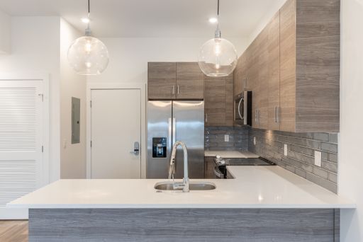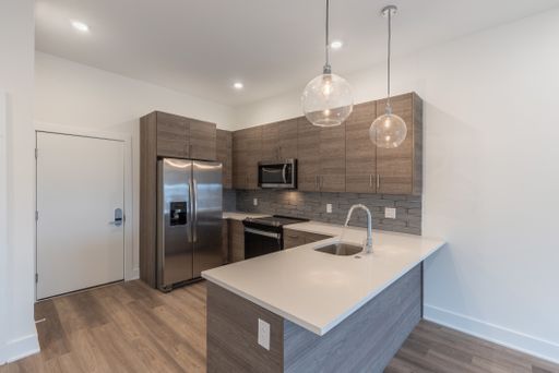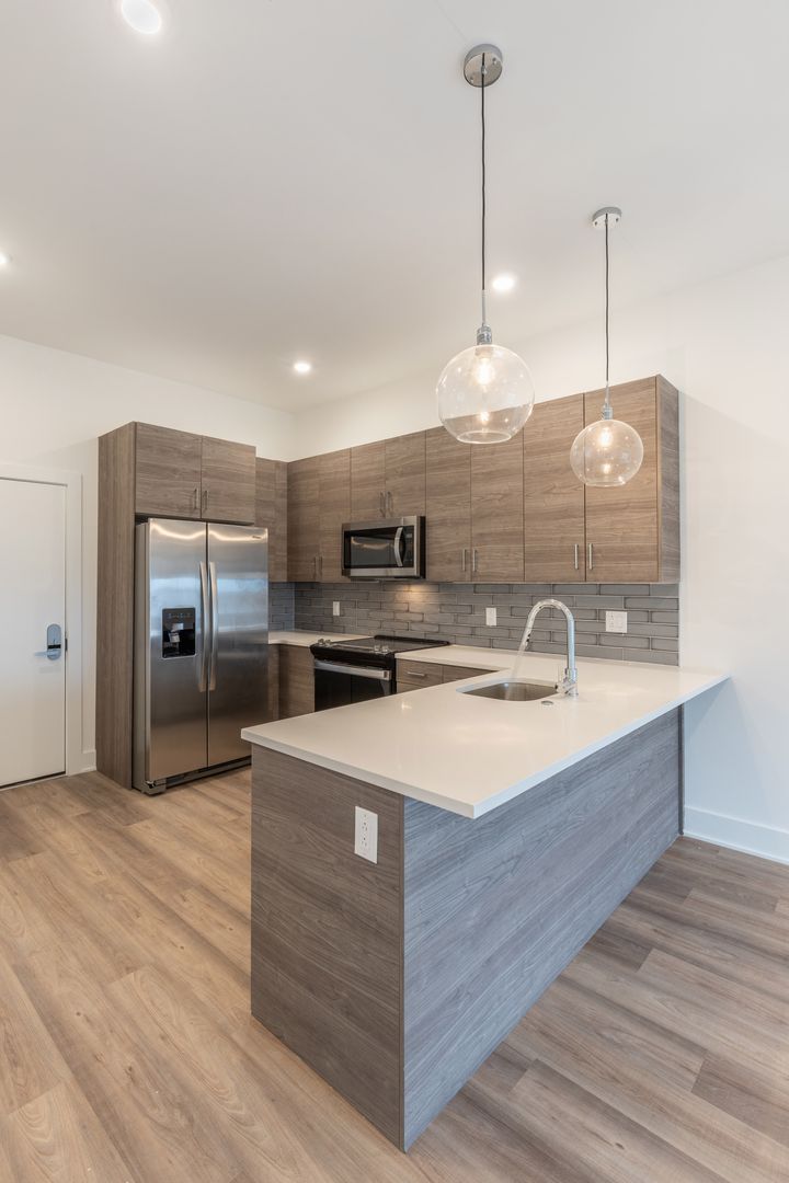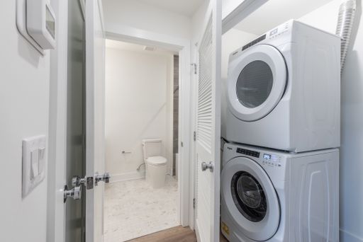 Residents at The Nook will enjoy an abundance of amenities including smart home keyless entry systems, a fully furnished shared rooftop deck, and a fitness center that is equipped with top-of-the-line gym equipment. There is an on-site package center which will allow for simple order delivery and return services, as well as limited off street garage parking available to residents. Each unit is highlighted by sleek white countertops, modern shaker cabinetry, high end Whirlpool stainless appliances, custom California styled built out closets, and tons of natural lighting from the massive windows throughout.