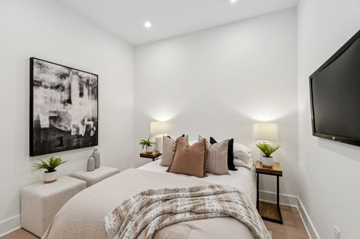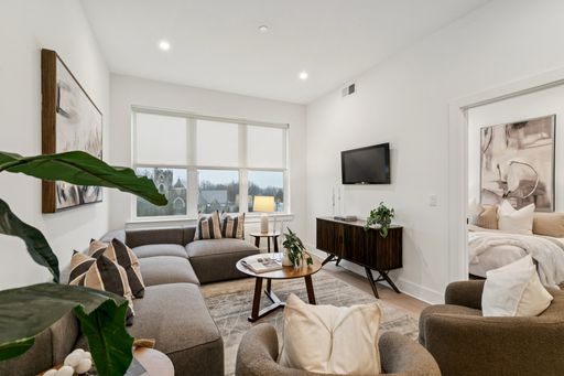 Inside each residence, contemporary interiors blend modern sophistication with the timeless character of the surrounding neighborhood. Apartment homes are outfitted with Samsung stainless steel appliances, classic shaker-style cabinetry, stunning waterfall quartz countertops and backsplashes, Latch smart access, smart thermostats, custom closet systems, built-in mudrooms, and spacious, open layouts designed for both style and functionality.