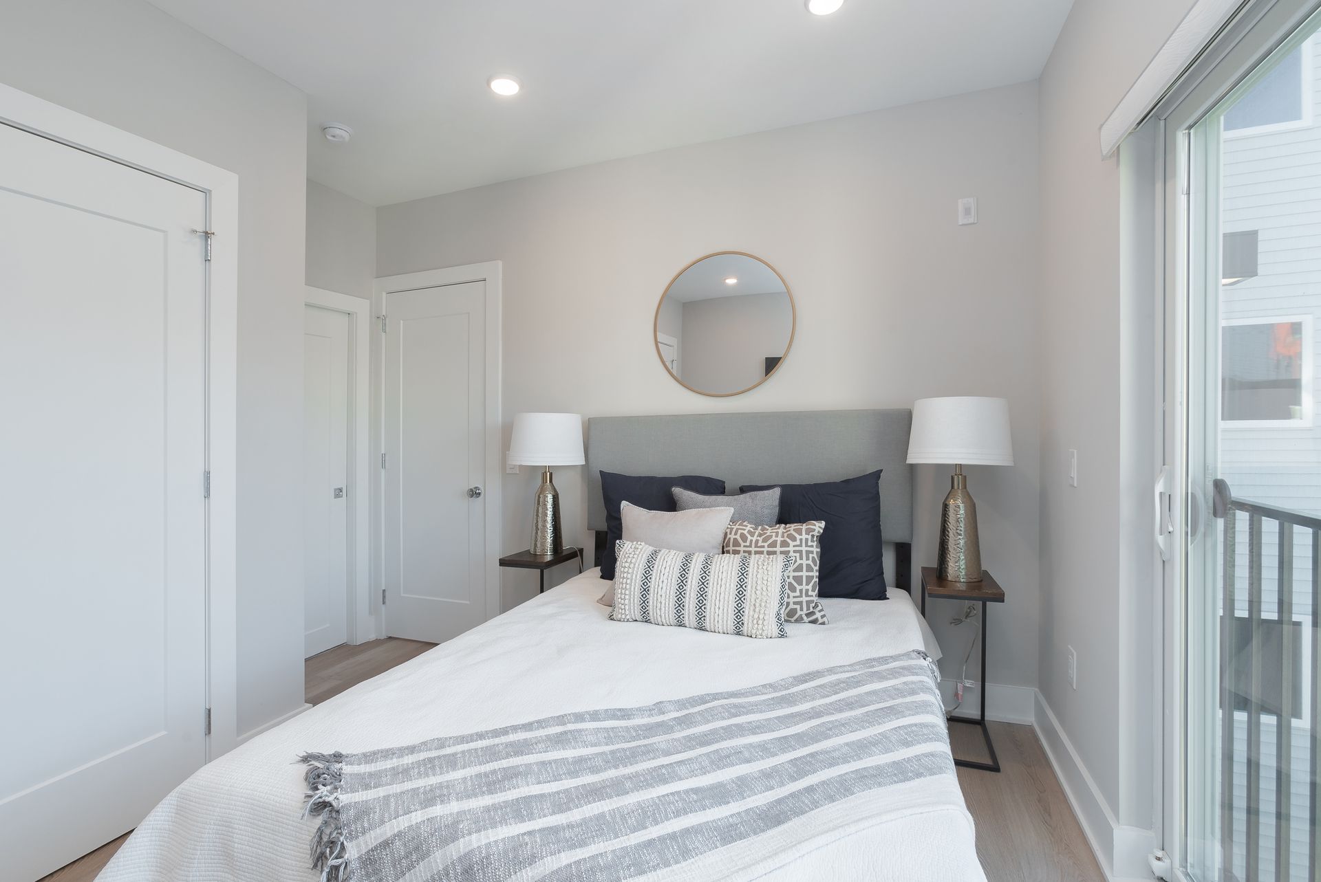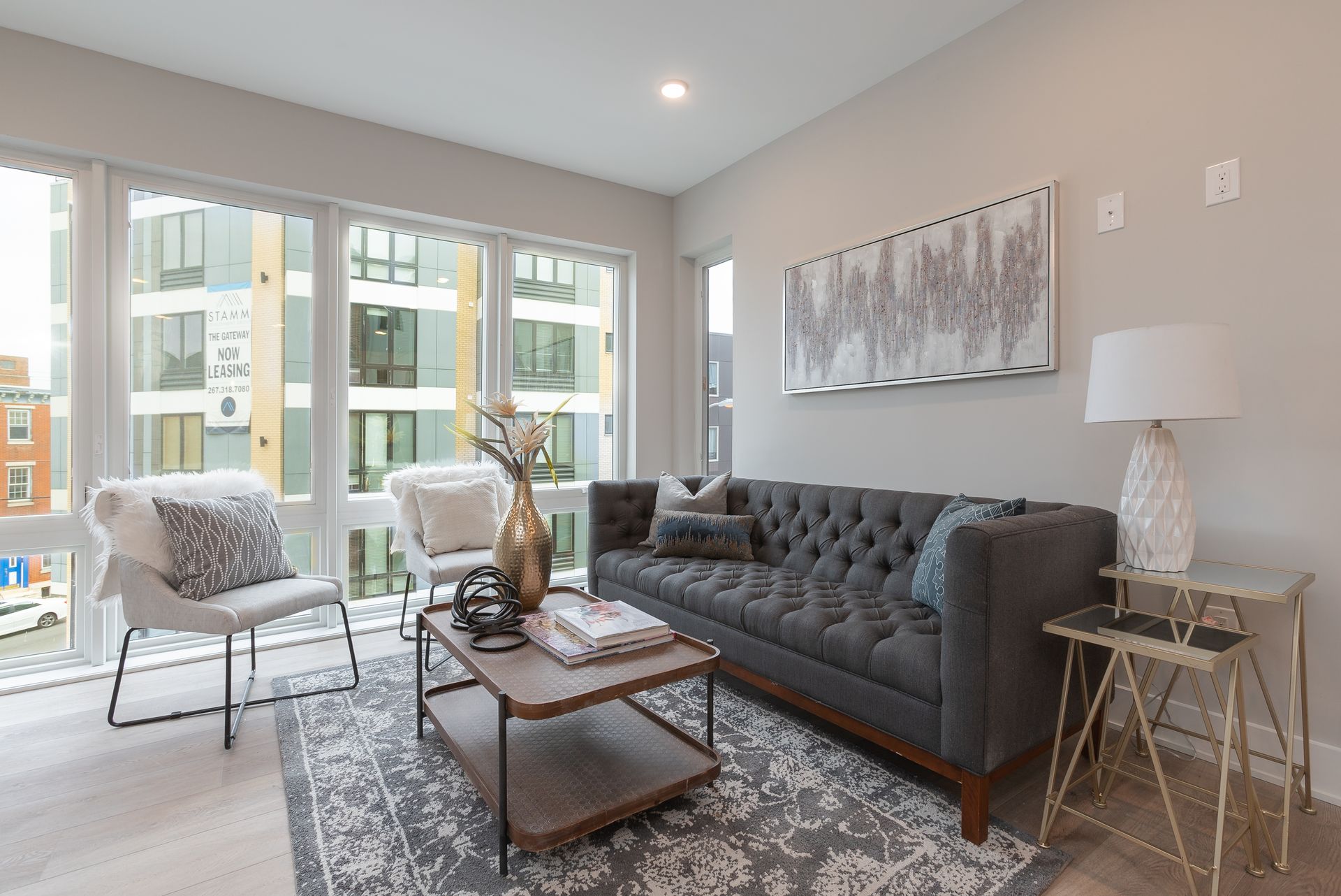 Our 01 layouts feature an extremely functional floor plans with a large bedroom and rarely comes available for lease. The kitchen area features modern soapstone quartz counter tops, 42-inch white shaker cabinetry and high end stainless steel appliances. In other areas of the unit you'll be amazed to find unique, luxury tile selections, custom California styled built out closets, in-unit laundry, and a ton of natural lighting from the floor to ceiling windows throughout.