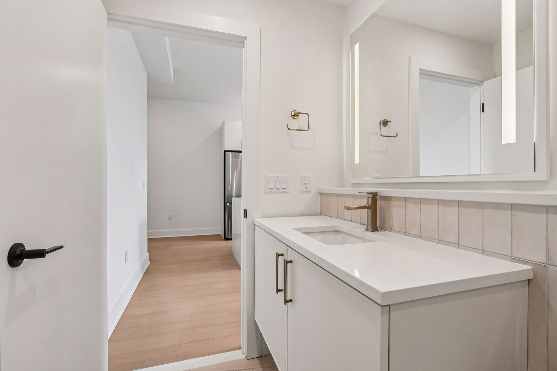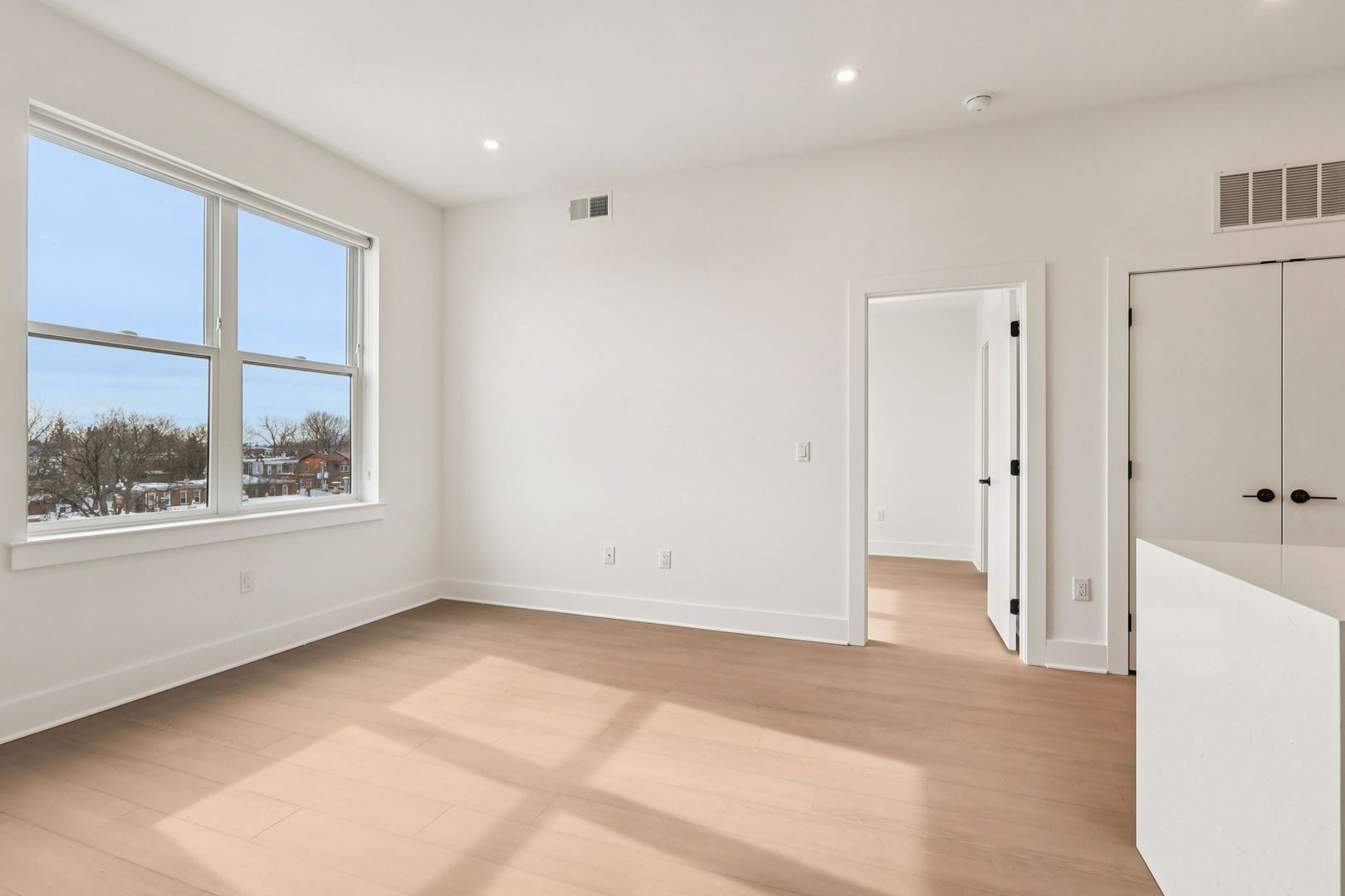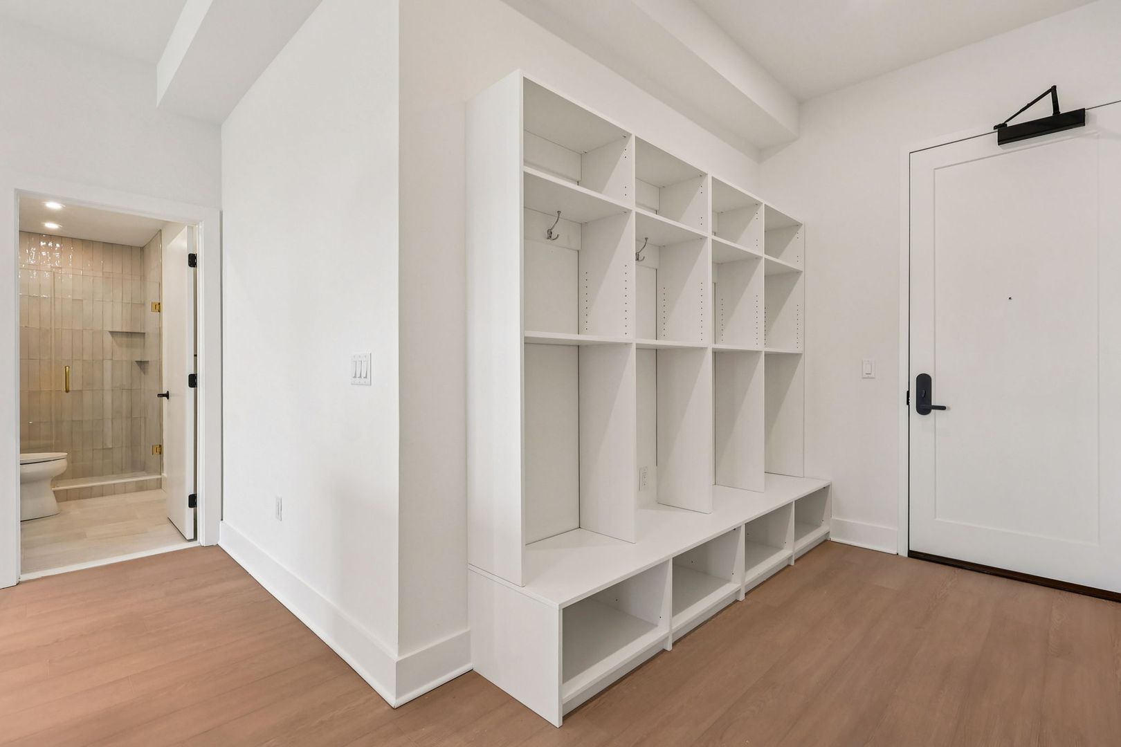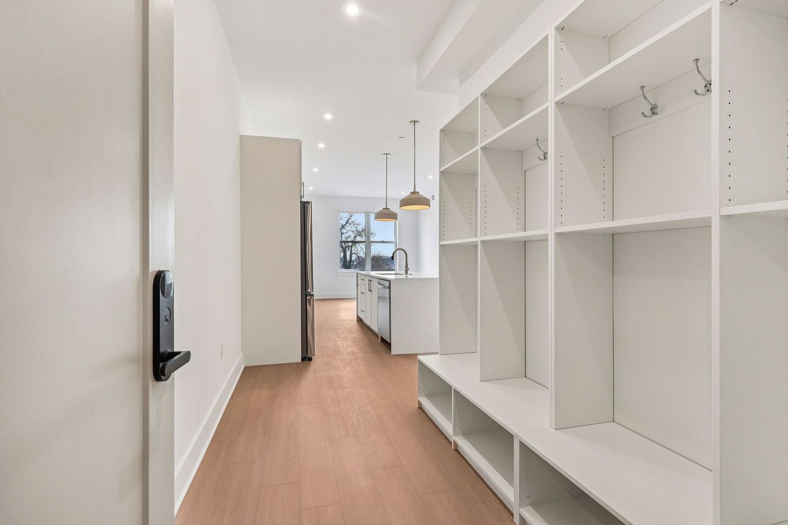 Inside each residence, contemporary interiors blend modern sophistication with the timeless character of the surrounding neighborhood. Apartment homes are outfitted with Samsung stainless steel appliances, classic shaker-style cabinetry, stunning waterfall quartz countertops and backsplashes, Latch smart access, smart thermostats, custom closet systems, built-in mudrooms, and spacious, open layouts designed for both style and functionality.