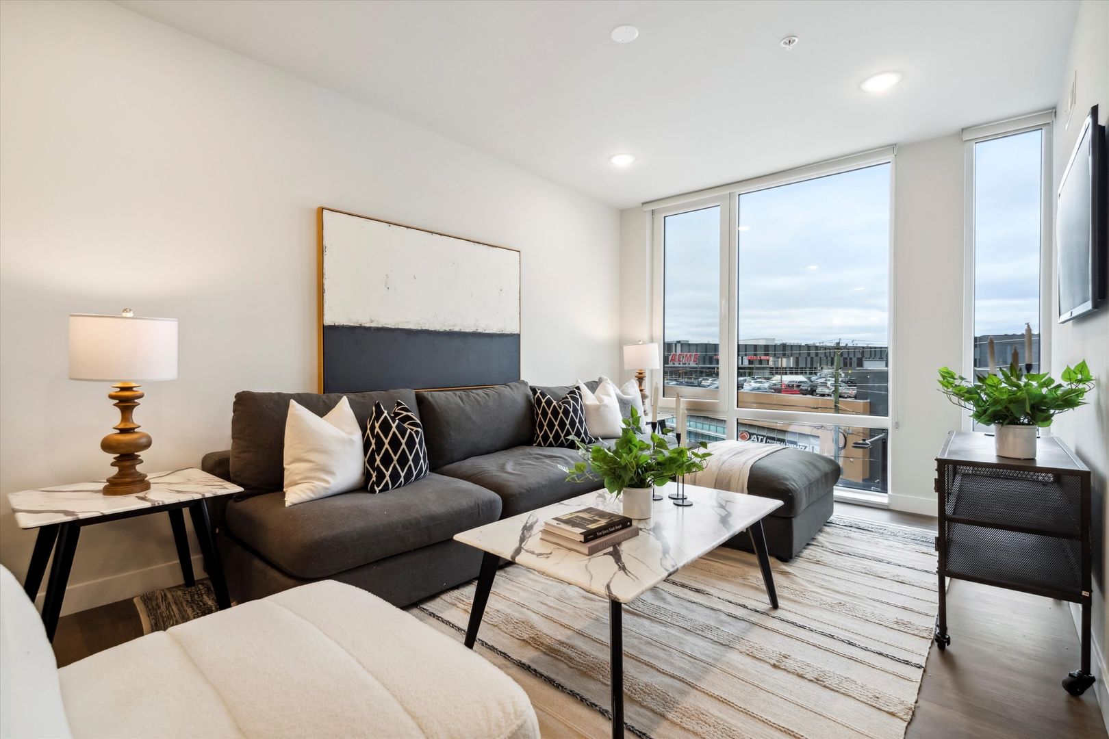 Each apartment home features contemporary design and thoughtful details, including two-tone kitchens that balance style and functionality. Elegant matte black finishes are beautifully complemented by gold accents for a refined touch. Spacious California closets provide ample storage and organization, while Whirlpool stainless steel appliances ensure performance and durability. Enjoy the ease of an in-unit washer and dryer and control your lighting and privacy effortlessly with built-in blinds. Select units also feature private balconies.