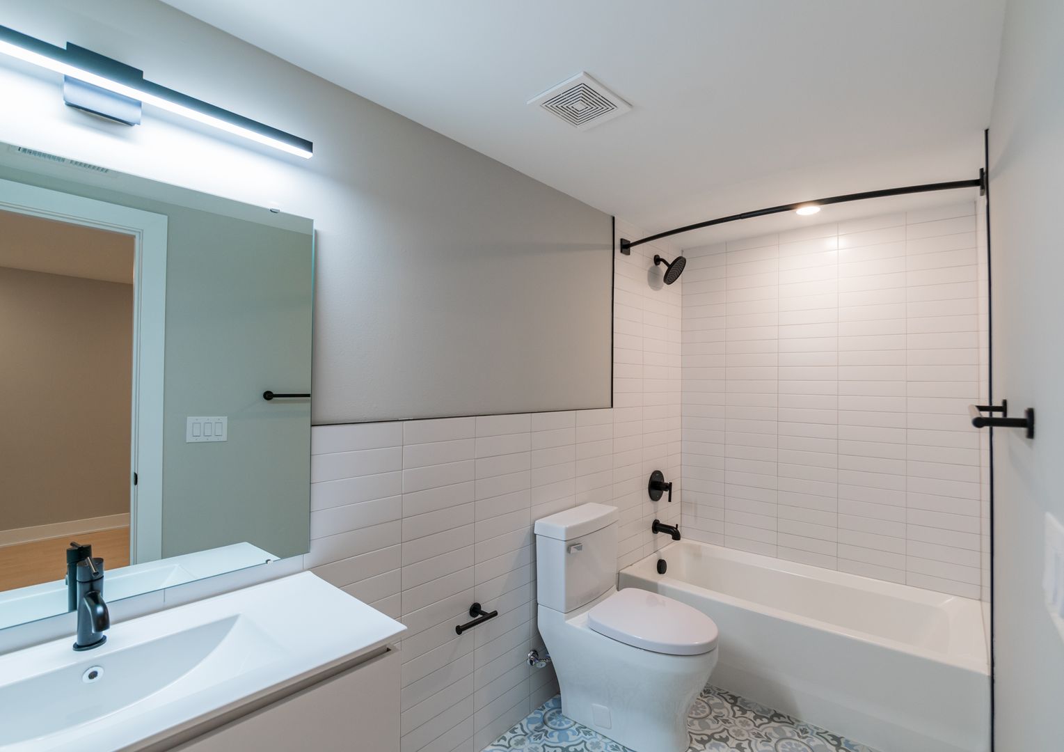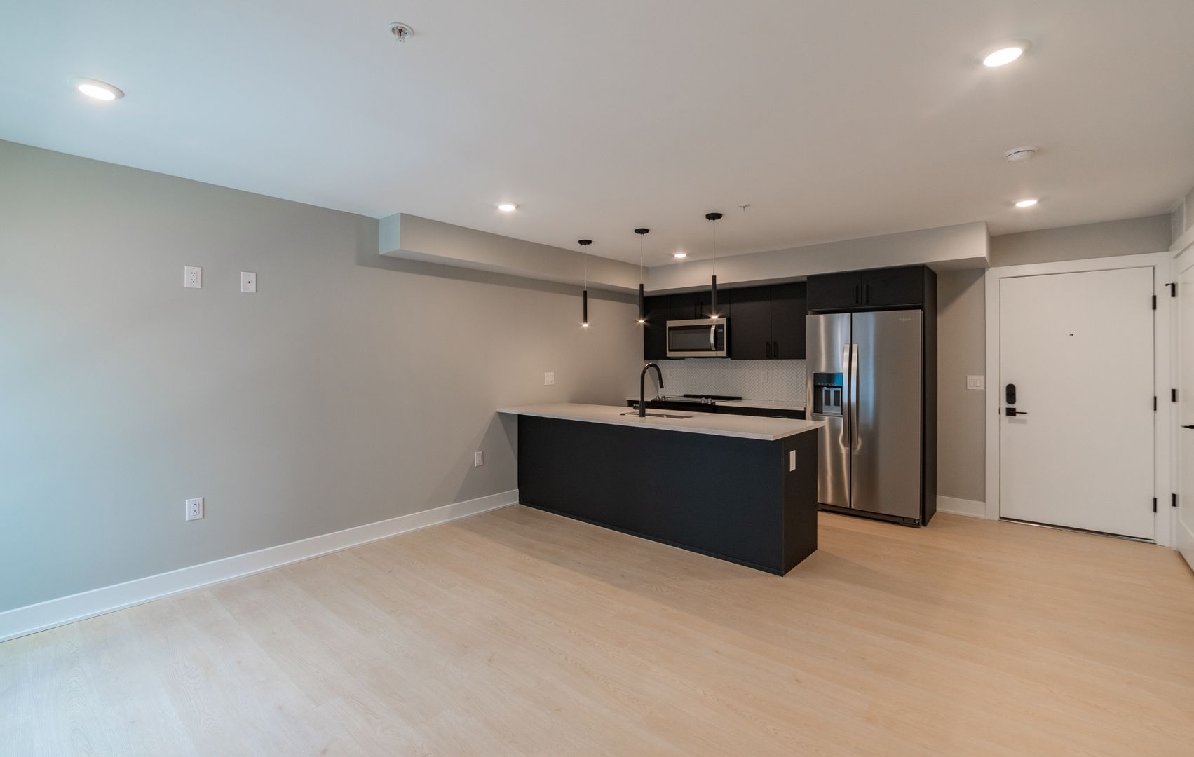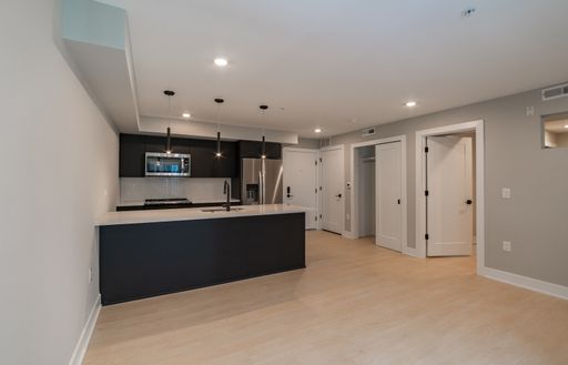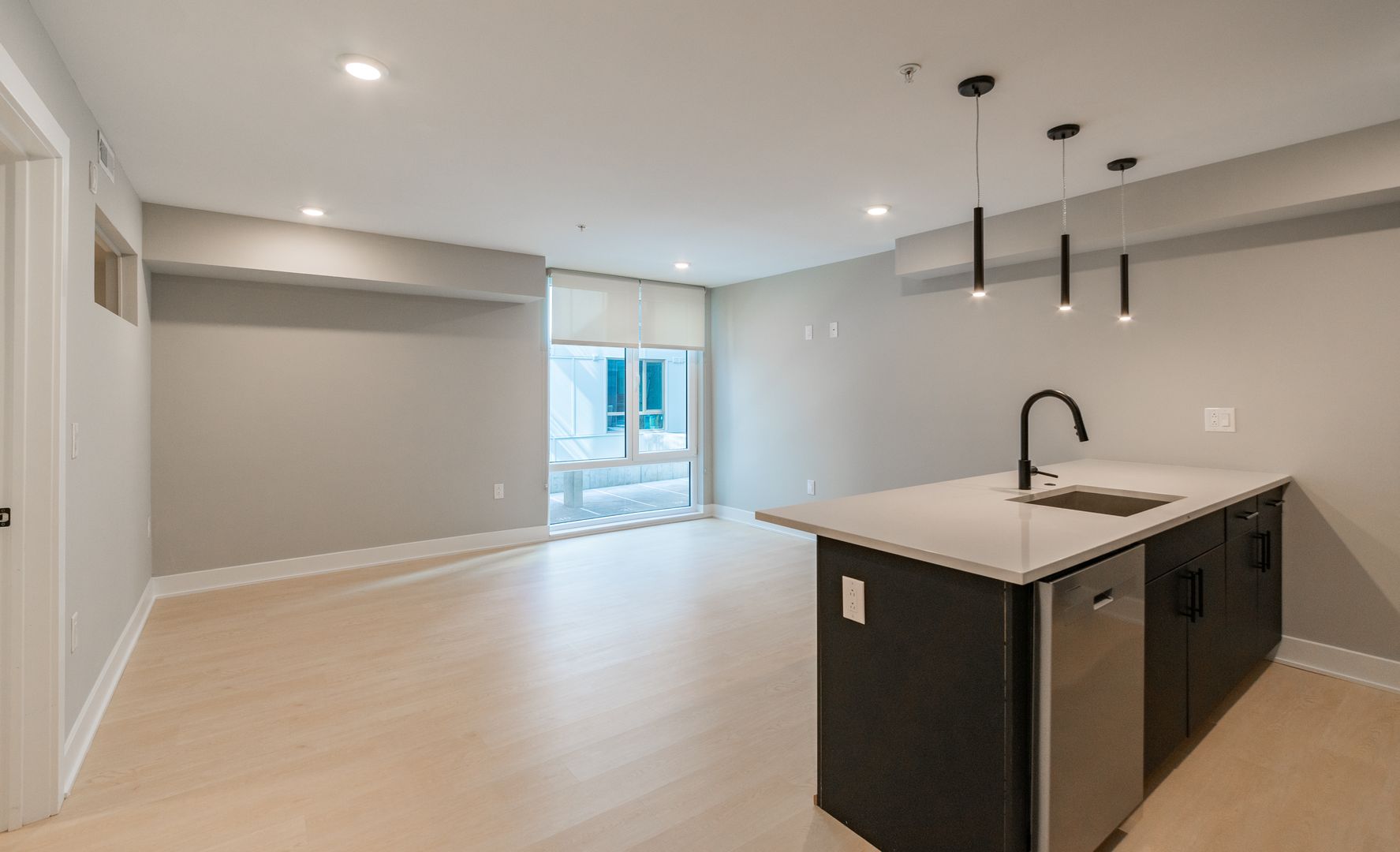 Inside, each spacious apartment home is thoughtfully designed with stainless steel appliances, quartz countertops, and matte black finishes that lend a modern, upscale touch. Elegant kitchens and bathrooms feature high-end fixtures, while in-unit washers and dryers make everyday chores simple and convenient. Open-concept layouts maximize every square inch of living space, allowing natural light to fill your home with warmth and comfort.