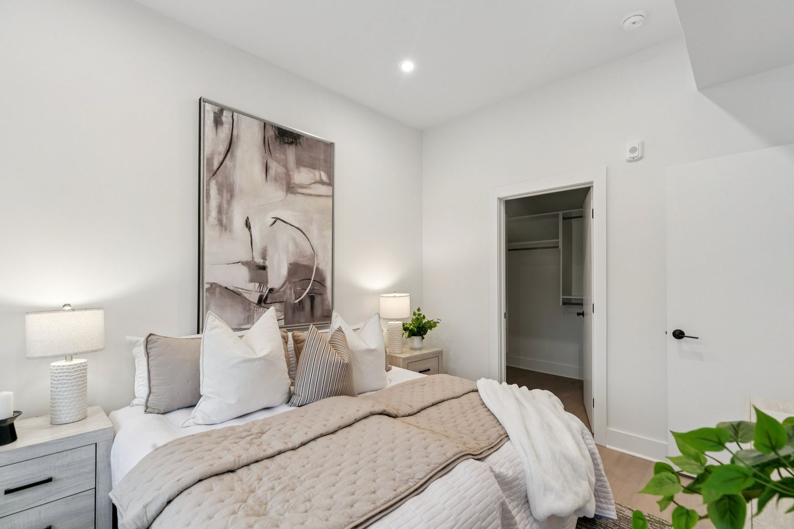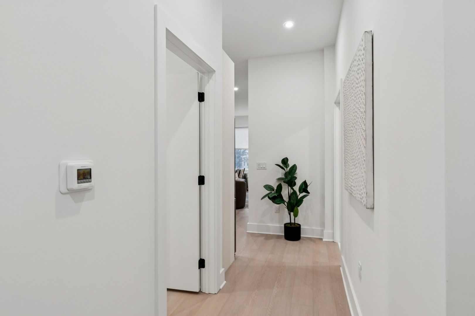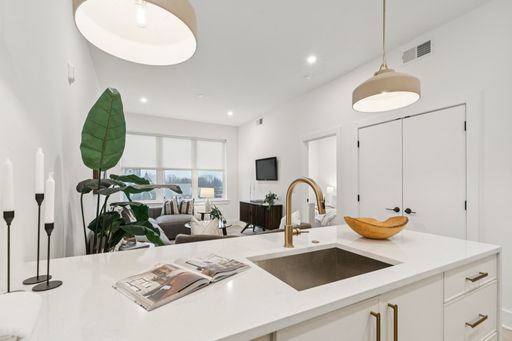 Inside each residence, contemporary interiors blend modern sophistication with the timeless character of the surrounding neighborhood. Apartment homes are outfitted with Samsung stainless steel appliances, classic shaker-style cabinetry, stunning waterfall quartz countertops and backsplashes, Latch smart access, smart thermostats, custom closet systems, built-in mudrooms, and spacious, open layouts designed for both style and functionality.