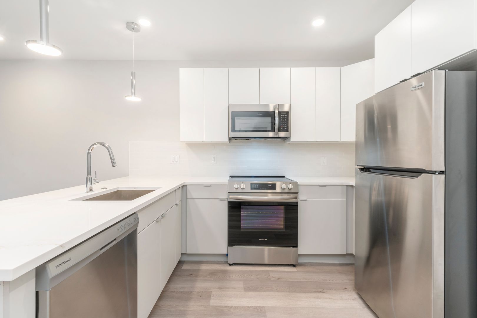 This brand-new construction features spacious one- and two-bedroom residences designed with contemporary elegance in mind. Each apartment showcases high-end finishes, including stainless steel appliances, quartz countertops, and hardwood floors throughout. Central air conditioning ensures year-round comfort, while full-sized in-unit washers and dryers add everyday convenience. Select units also offer private outdoor spaces, perfect for unwinding or entertaining.