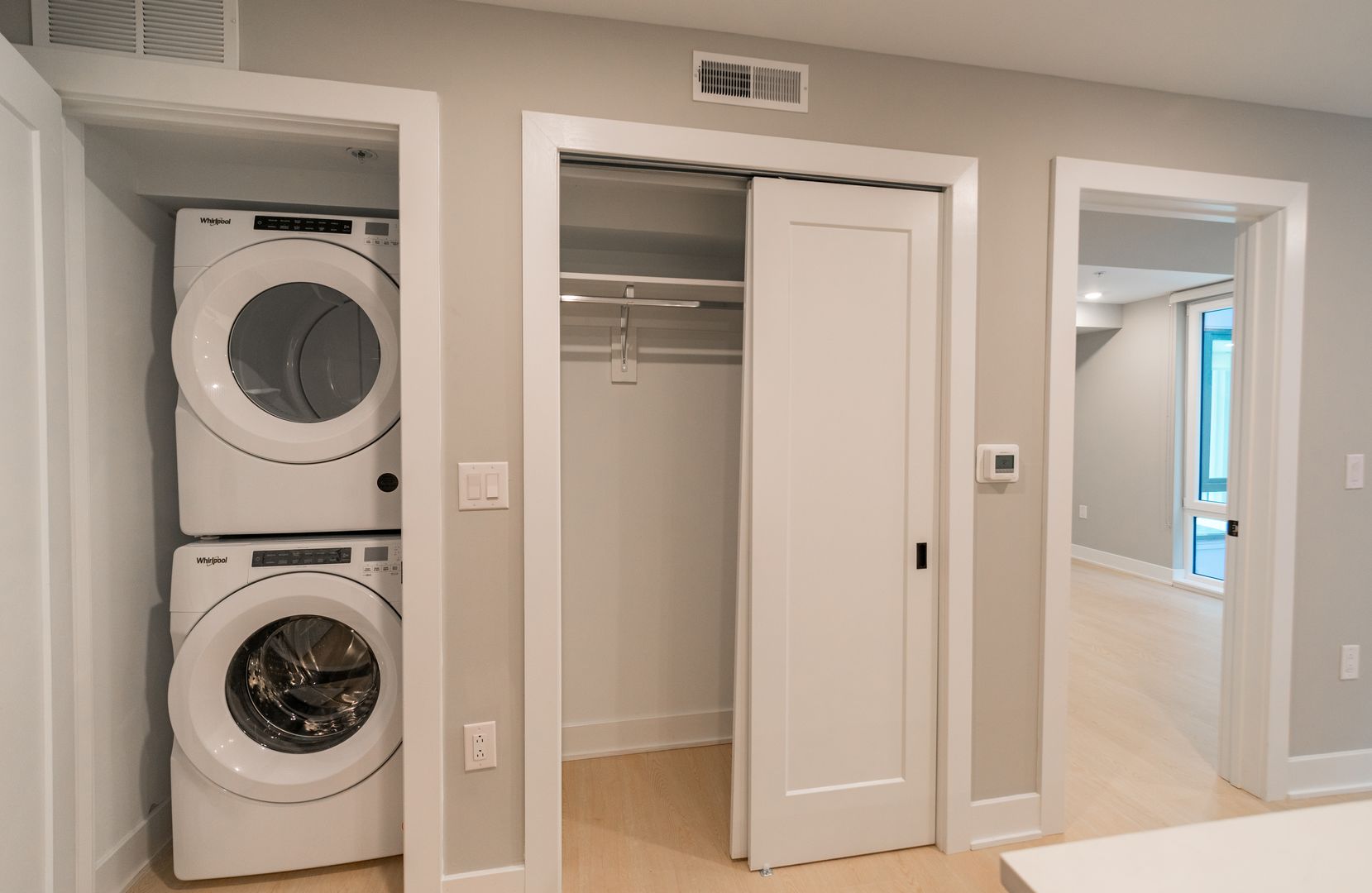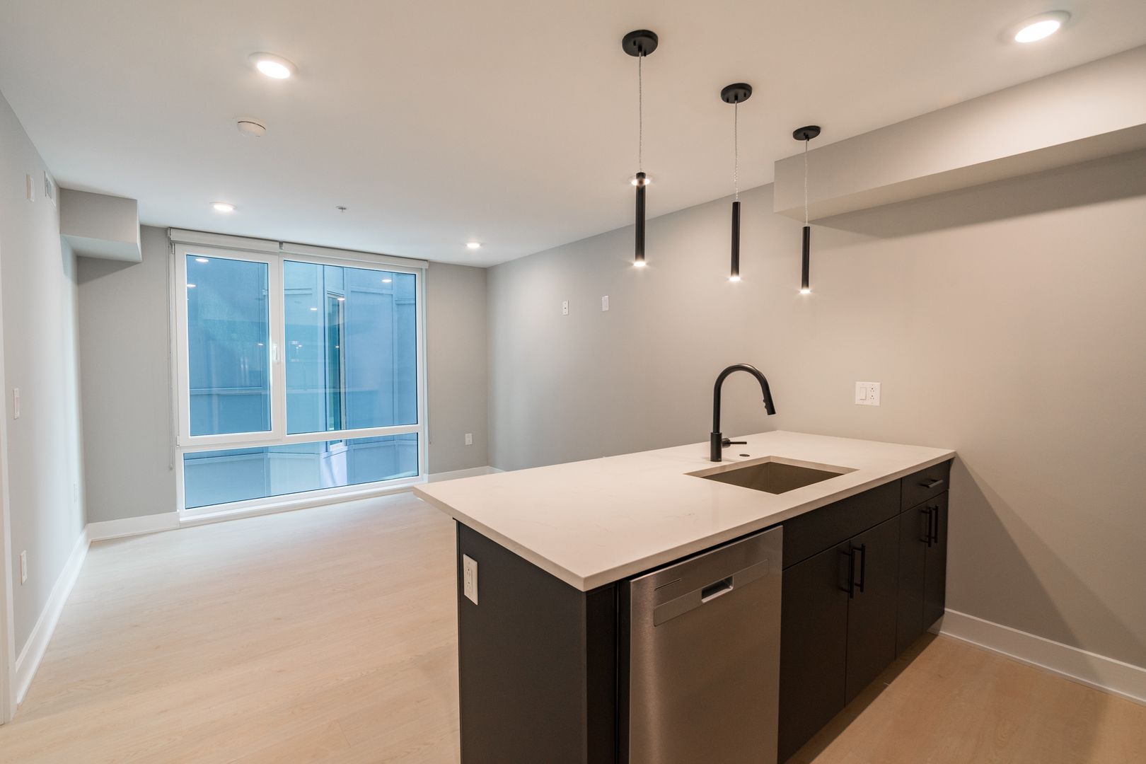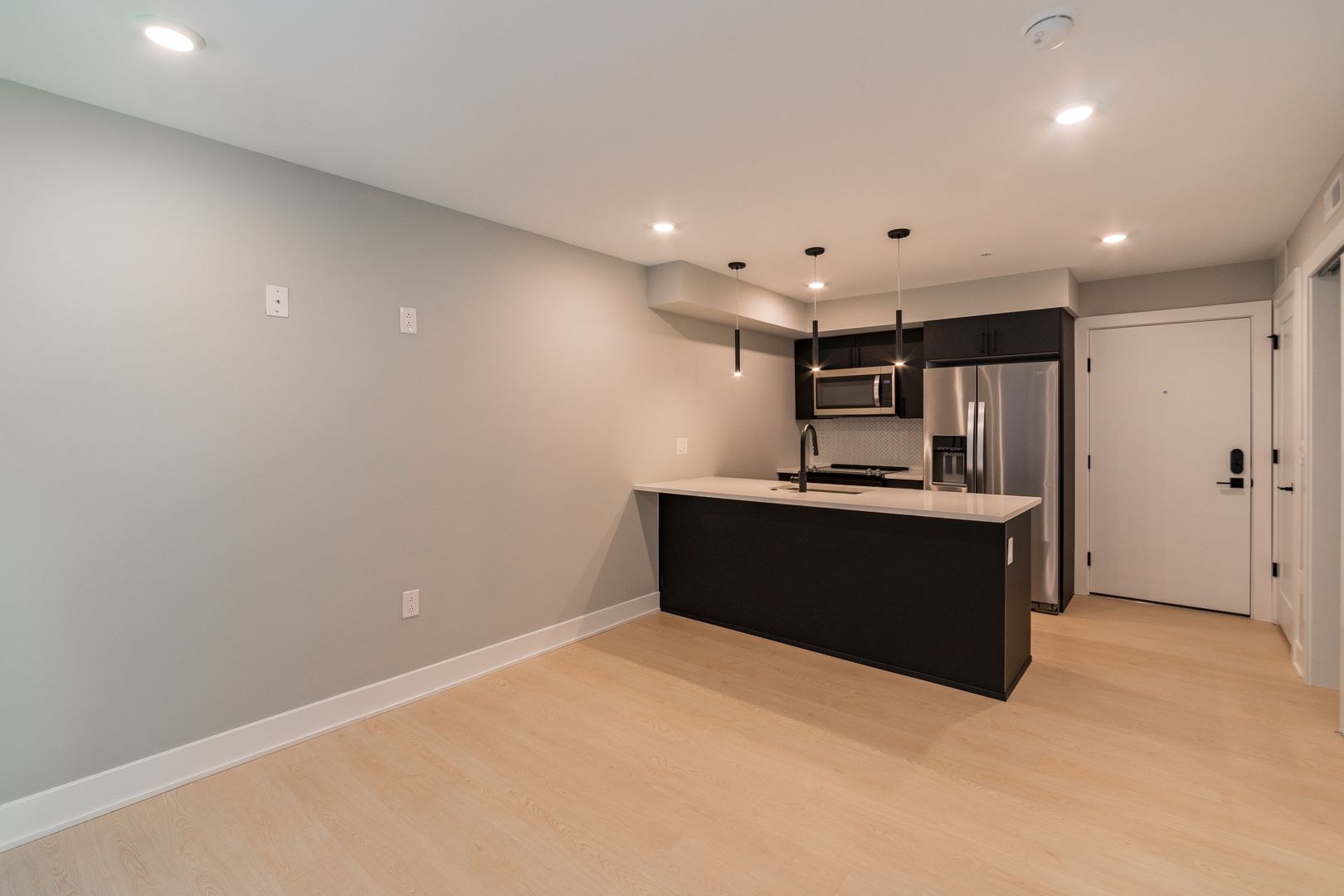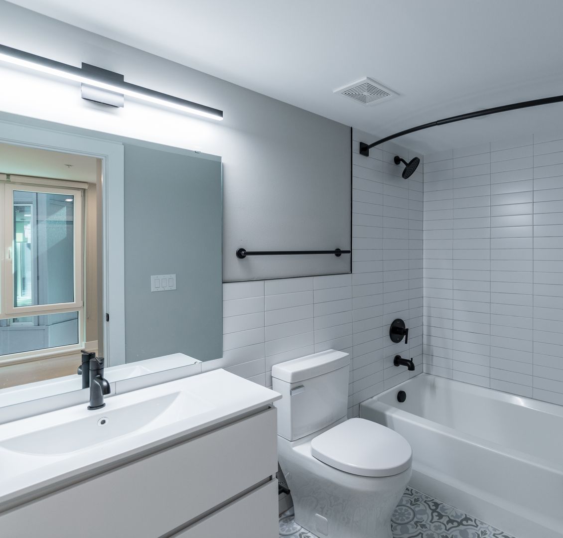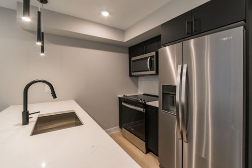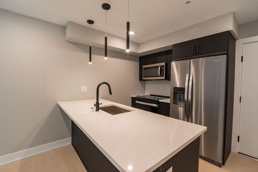 Inside, each spacious apartment home is thoughtfully designed with stainless steel appliances, quartz countertops, and matte black finishes that lend a modern, upscale touch. Elegant kitchens and bathrooms feature high-end fixtures, while in-unit washers and dryers make everyday chores simple and convenient. Open-concept layouts maximize every square inch of living space, allowing natural light to fill your home with warmth and comfort.