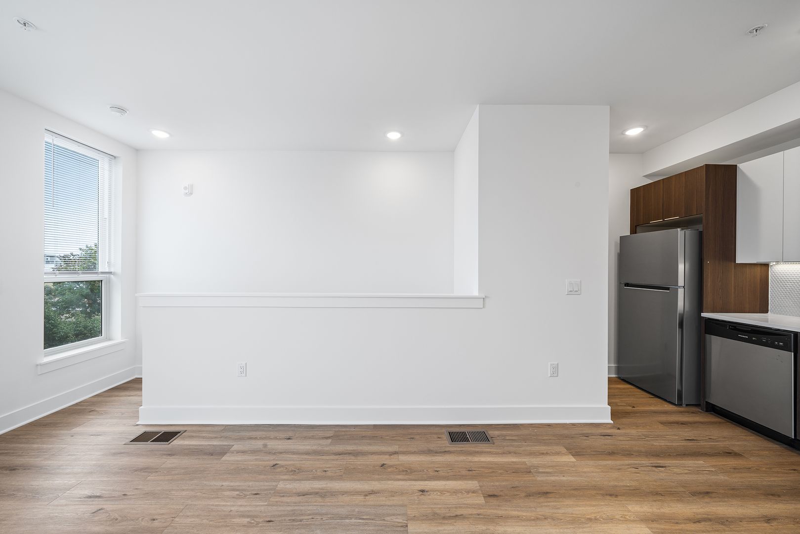 Each residence offers bright, open-concept living with abundant natural light, hardwood flooring throughout, and modern finishes that make every space feel warm and inviting. The chef-inspired kitchens feature stainless steel appliances, subway tile backsplashes, ample cabinetry, and generous countertop space—perfect for cooking, entertaining, or working from home.