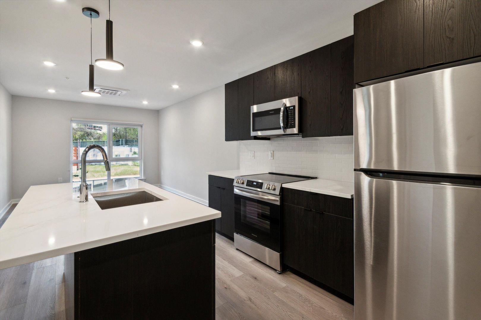 This brand-new construction features spacious one- and two-bedroom residences designed with contemporary elegance in mind. Each apartment showcases high-end finishes, including stainless steel appliances, quartz countertops, and hardwood floors throughout. Central air conditioning ensures year-round comfort, while full-sized in-unit washers and dryers add everyday convenience. Select units also offer private outdoor spaces, perfect for unwinding or entertaining.