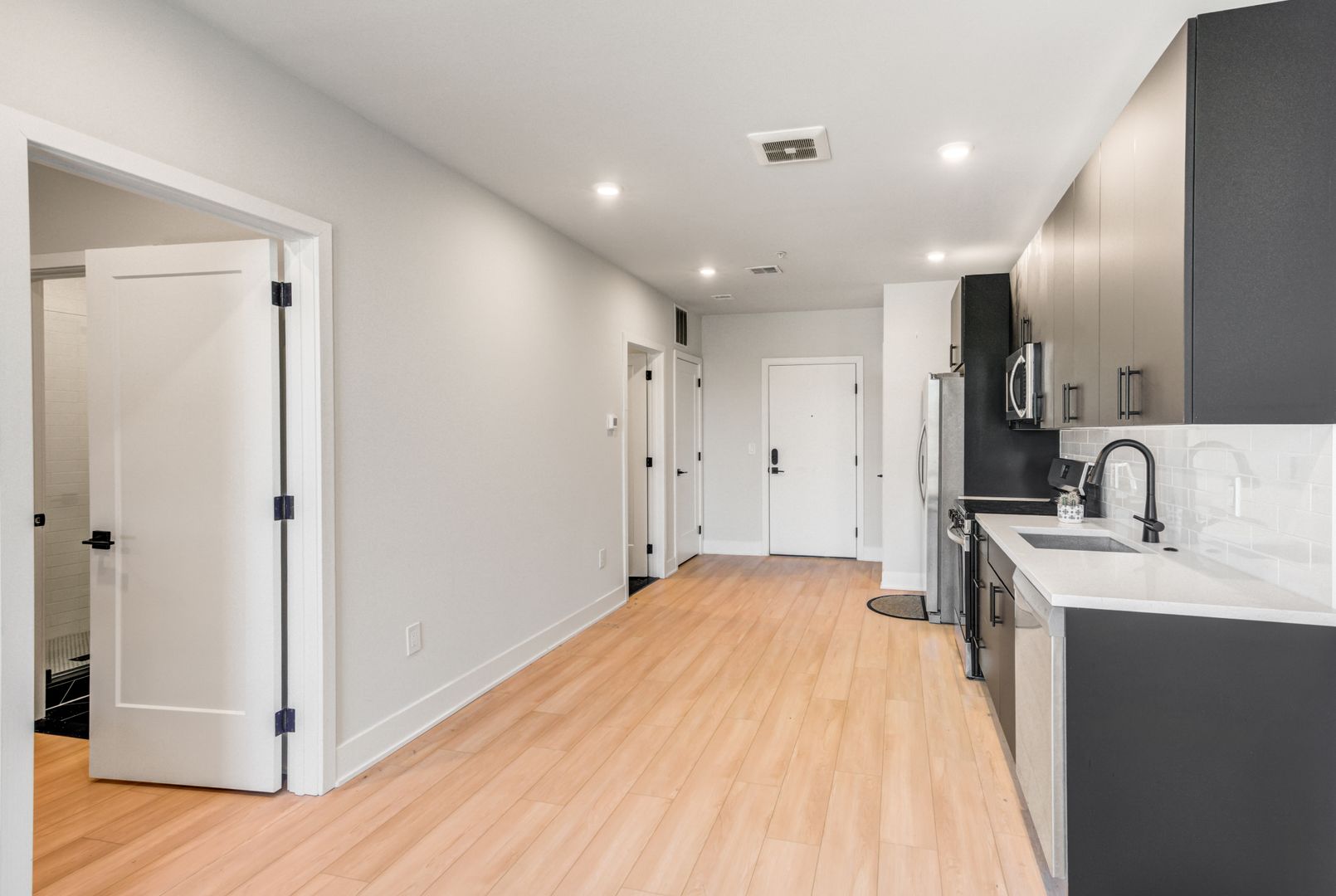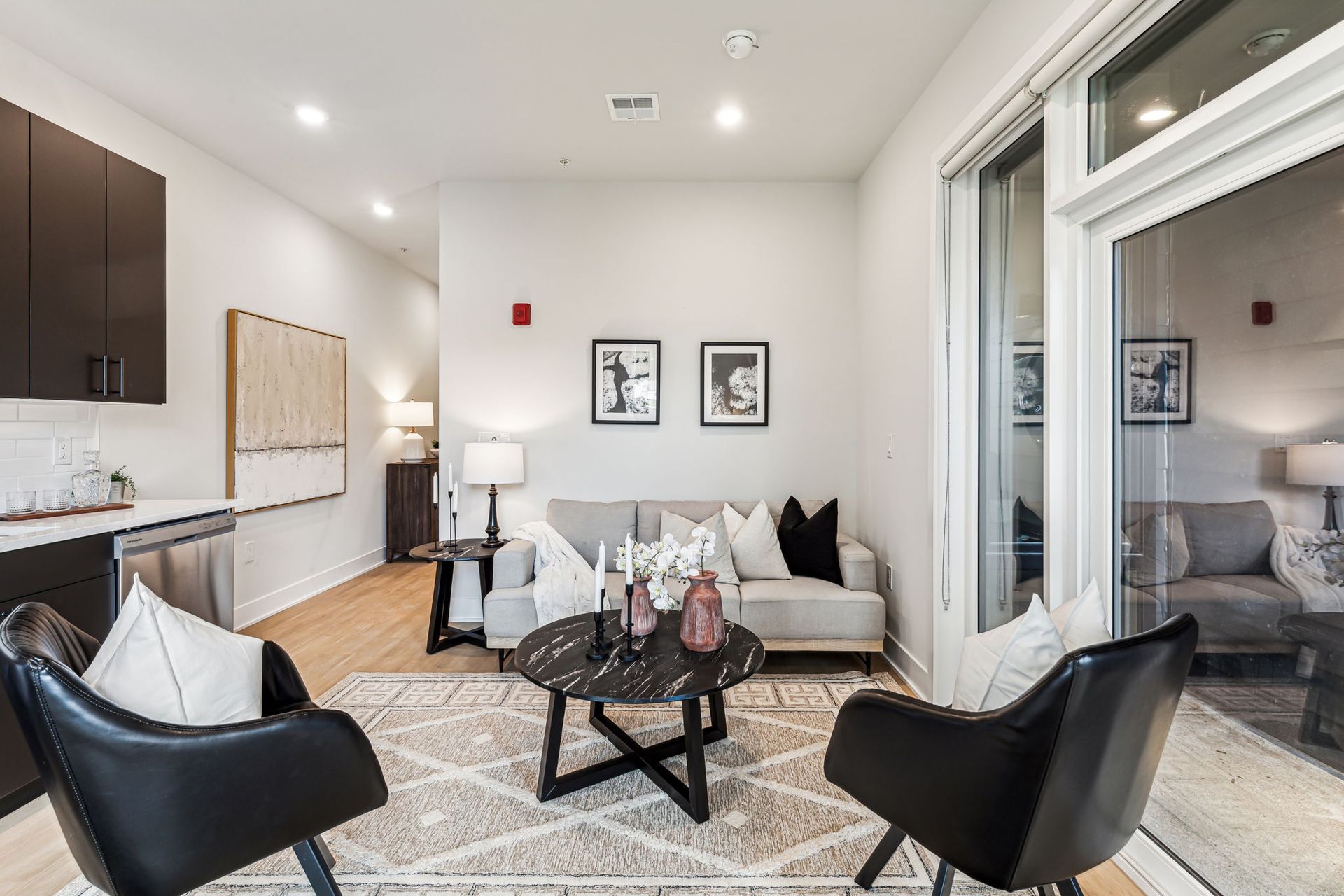 Each apartment showcases luxury designer finishes and upgraded appliance packages, creating spaces that feel as beautiful as they are functional. Thoughtfully designed kitchens feature modern islands ideal for dining or entertaining, while select units offer private outdoor spaces perfect for relaxing in style.